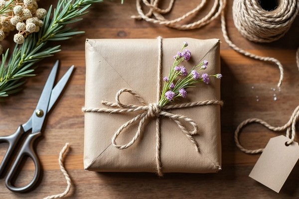 Сухоцветы не мнутся и не крошатся, поэтому идеально подходят для упаковки. Хорошо смотрятся лаванда, хлопок, колоски или мини-еловые веточки. Такой декор долго сохраняет внешний вид и усиливает ощущение «живого» подарка.